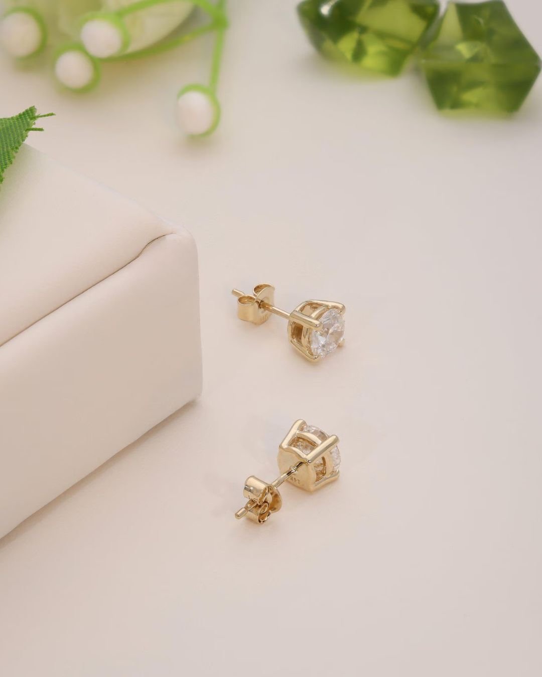 Classic elegance meets ethical brilliance with these 14K yellow gold lab-grown round diamond stud earrings, featuring 2 carats total weight set in a secure heavy 4-prong setting. Perfect gift for mother, wife, or daughter. Made to order.