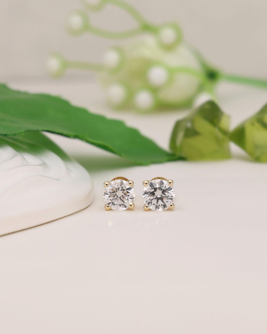 Celebrate timeless beauty and meaningful gifting with these exquisite round brilliant cut lab-grown diamond stud earrings. Crafted in solid 14K yellow gold and featuring a heavy 4-prong setting for durability and sparkle, these studs showcase a total of 2 carats of ethically sourced lab-created diamonds.The secure push-back fastening ensures comfortable all-day wear, making these earrings a perfect gift for your mother, wife, daughter, or yourself. Each pair is made to order with precision and care.
