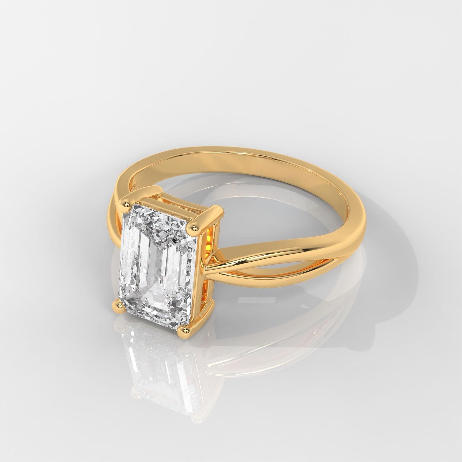 Elevate your love story with the Emerald Cut Split Shank Engagement Ring by OTP Jewelry—a masterful blend of classic refinement and modern sophistication. This exquisite ring features a striking emerald-cut IGI certified lab-grown diamond, set in rich 14K yellow gold.