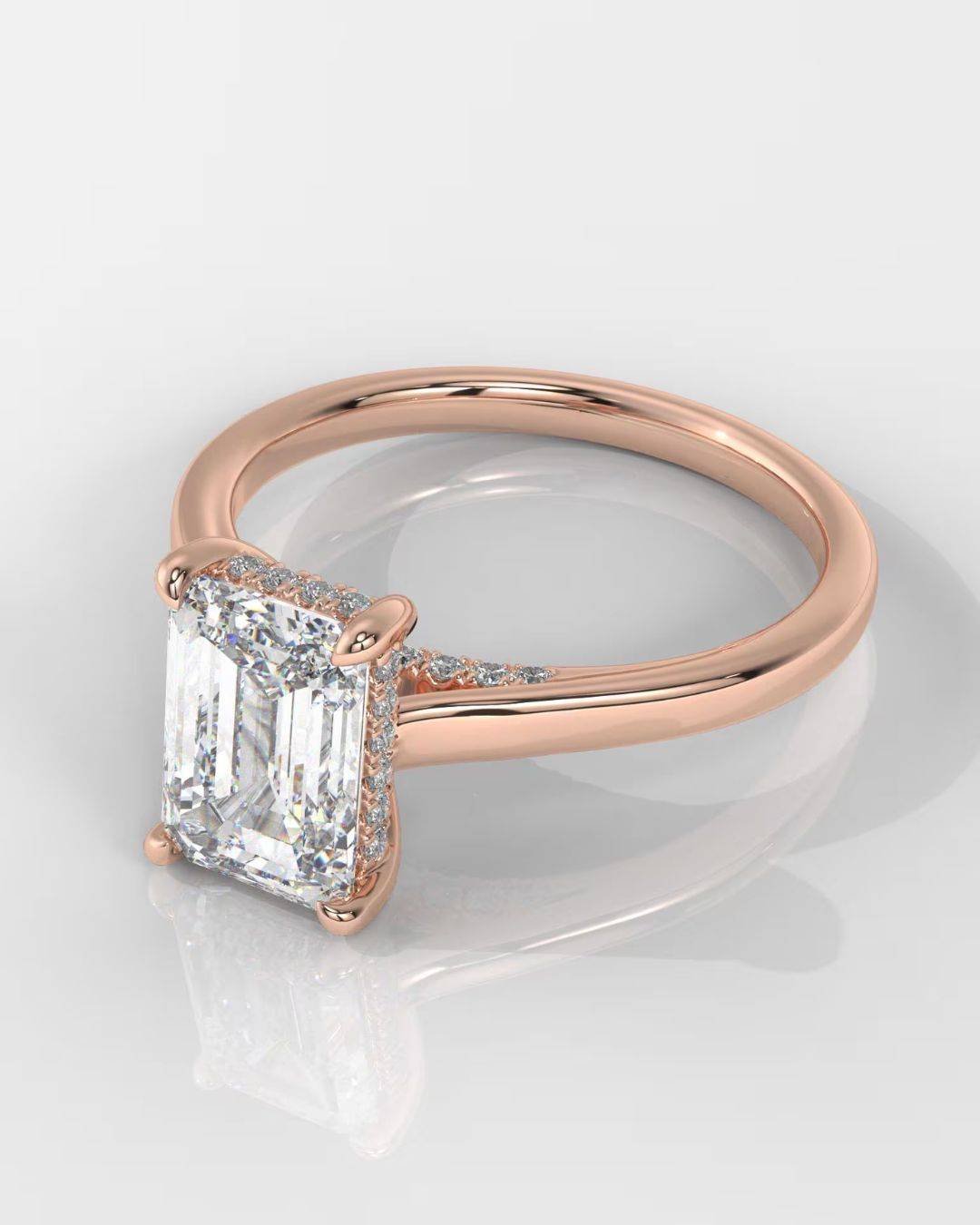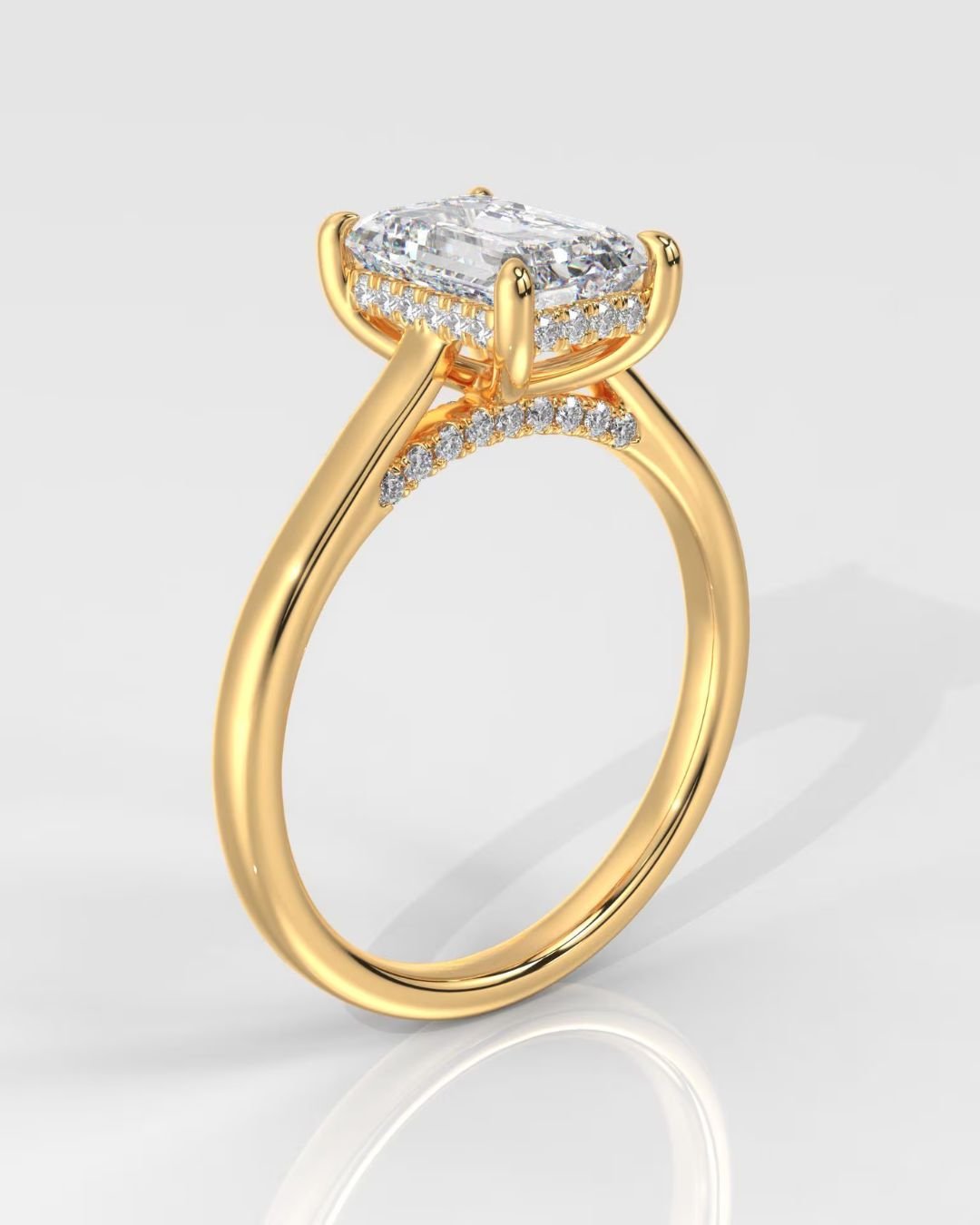 Make your moment unforgettable with this stunning Emerald Cut Hidden Halo Lab Grown Diamond Engagement Ring, masterfully crafted in 14K gold. Featuring an elegant emerald-cut center diamond with a hidden halo and side diamonds, this ring offers brilliance from every angle.