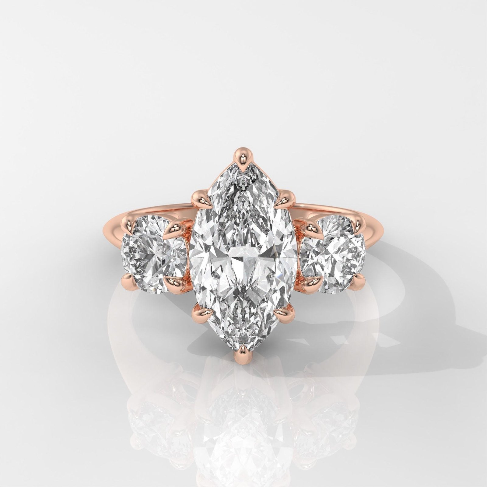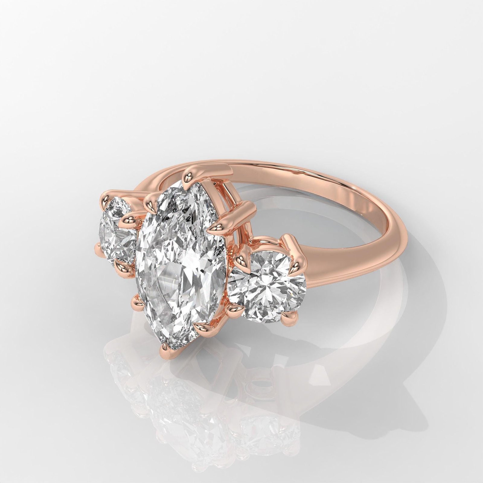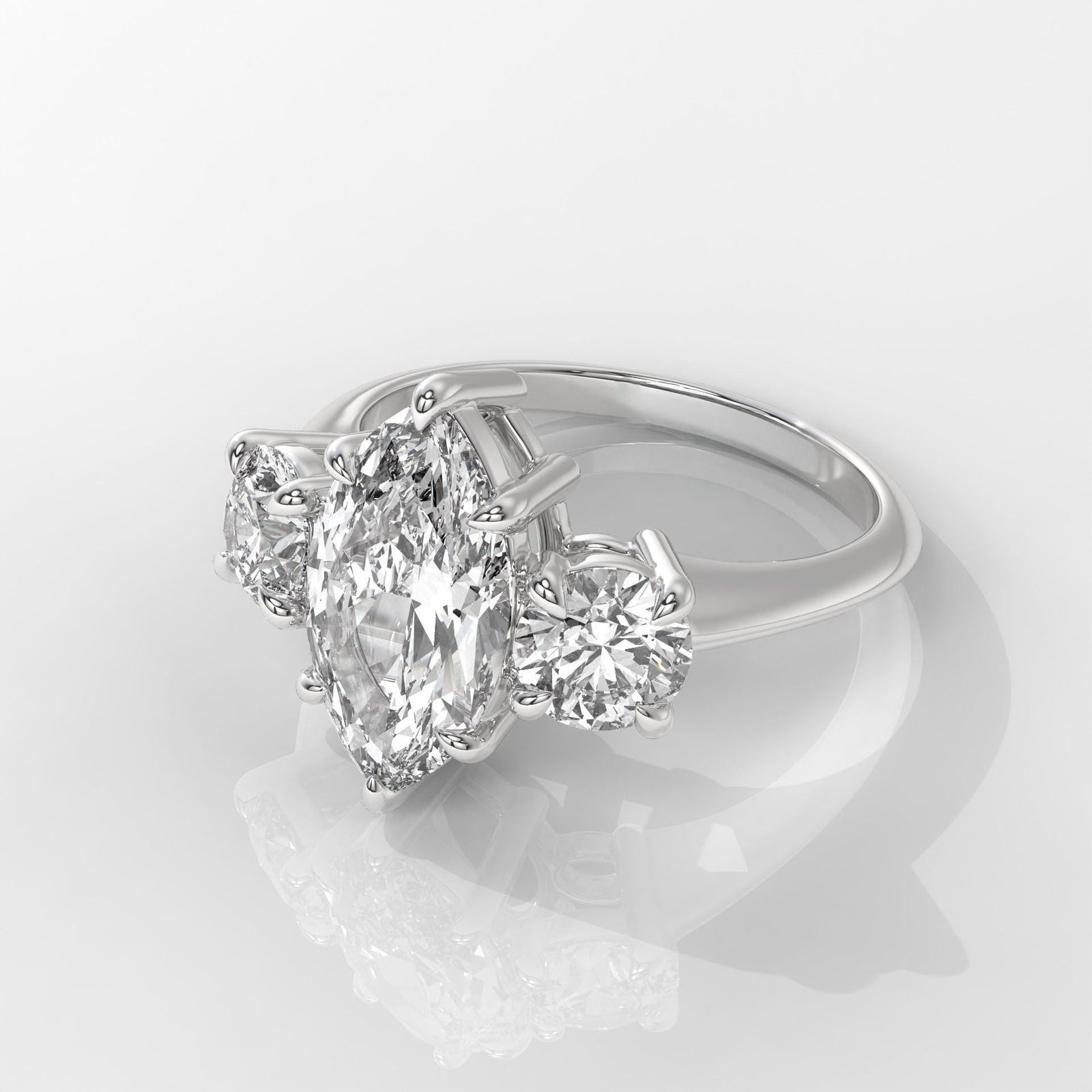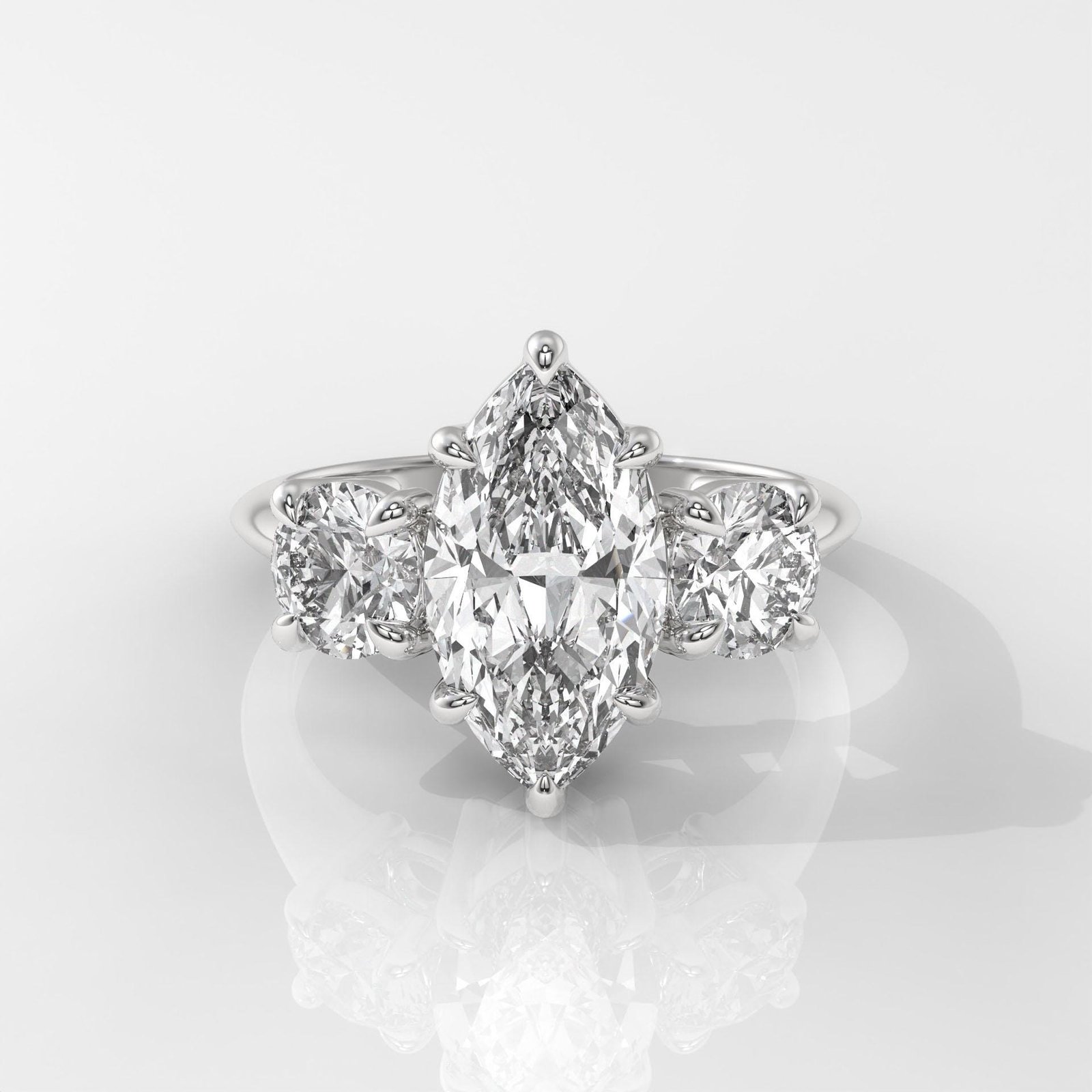 The Marquise Brilliant Engagement Ring by OTP Jewelry captures timeless elegance with a dazzling marquise-cut center diamond, beautifully accented by side stones for added sparkle. The elongated shape enhances the brilliance while creating a graceful, sophisticated look.