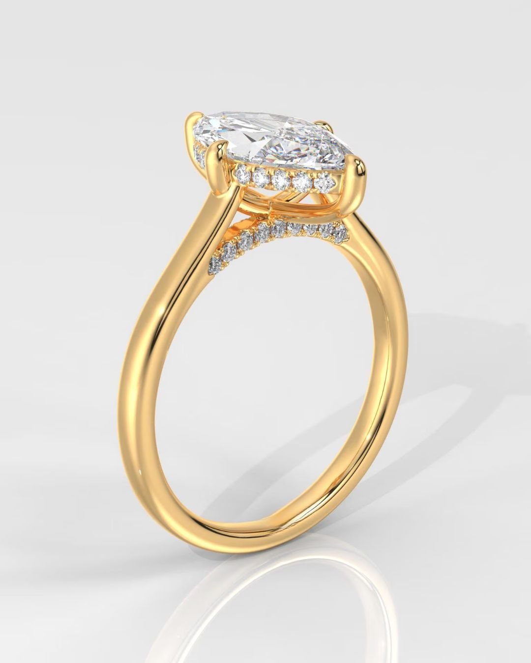Sophisticated and sleek, this Marquise Brilliant Lab Grown Diamond Engagement Ring in 14K gold is a modern take on classic romance. The centerpiece is a striking Marquise Brilliant IGI Certified Lab Grown Diamond, known for its elongated shape and dramatic sparkle—perfect for making fingers appear longer and more elegant.