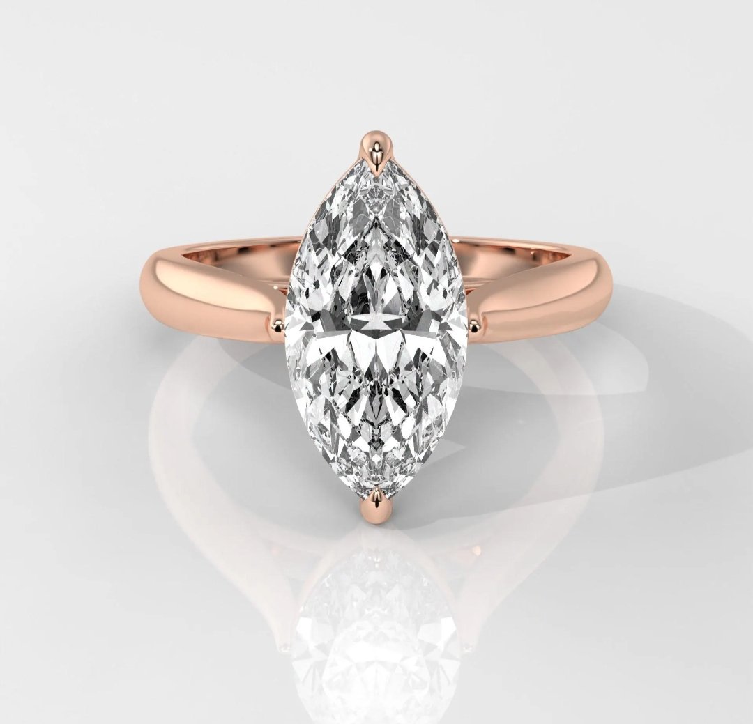 Celebrate timeless elegance with this 14K gold solitaire engagement ring, featuring a stunning 1ct Marquise Cut lab-grown diamond. Set on a sleek, polished band, this minimalist design highlights the diamond’s elongated brilliance perfect for those who love refined sophistication with a modern twist.