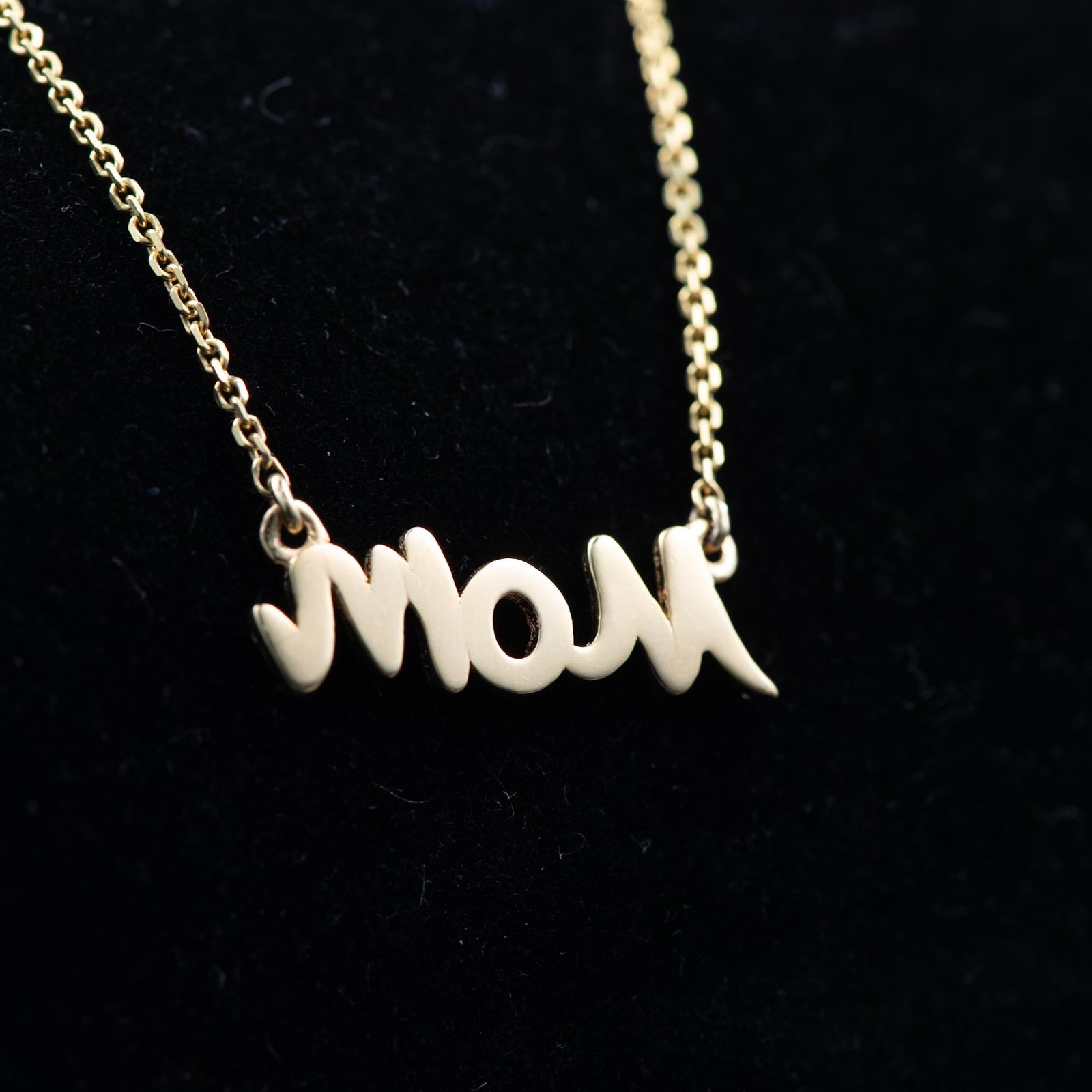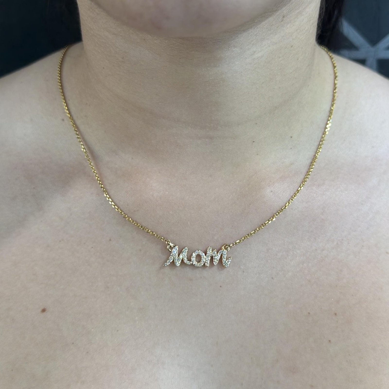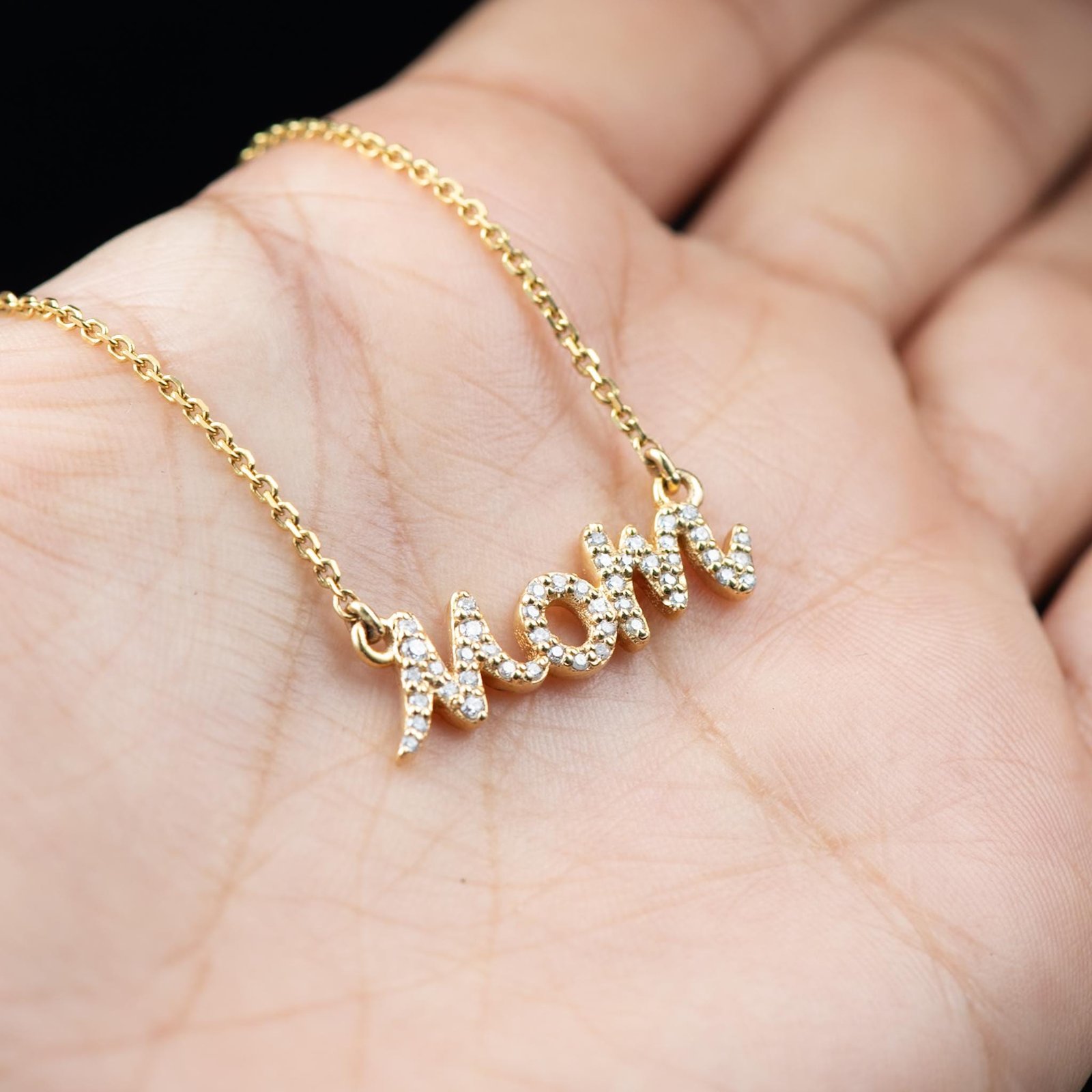 Personalized “Mom” Initial Necklace with Lab Grown Diamonds in 14K Gold. Choose from Rose, White, or Yellow Gold. Custom length & made to order for a meaningful gift.