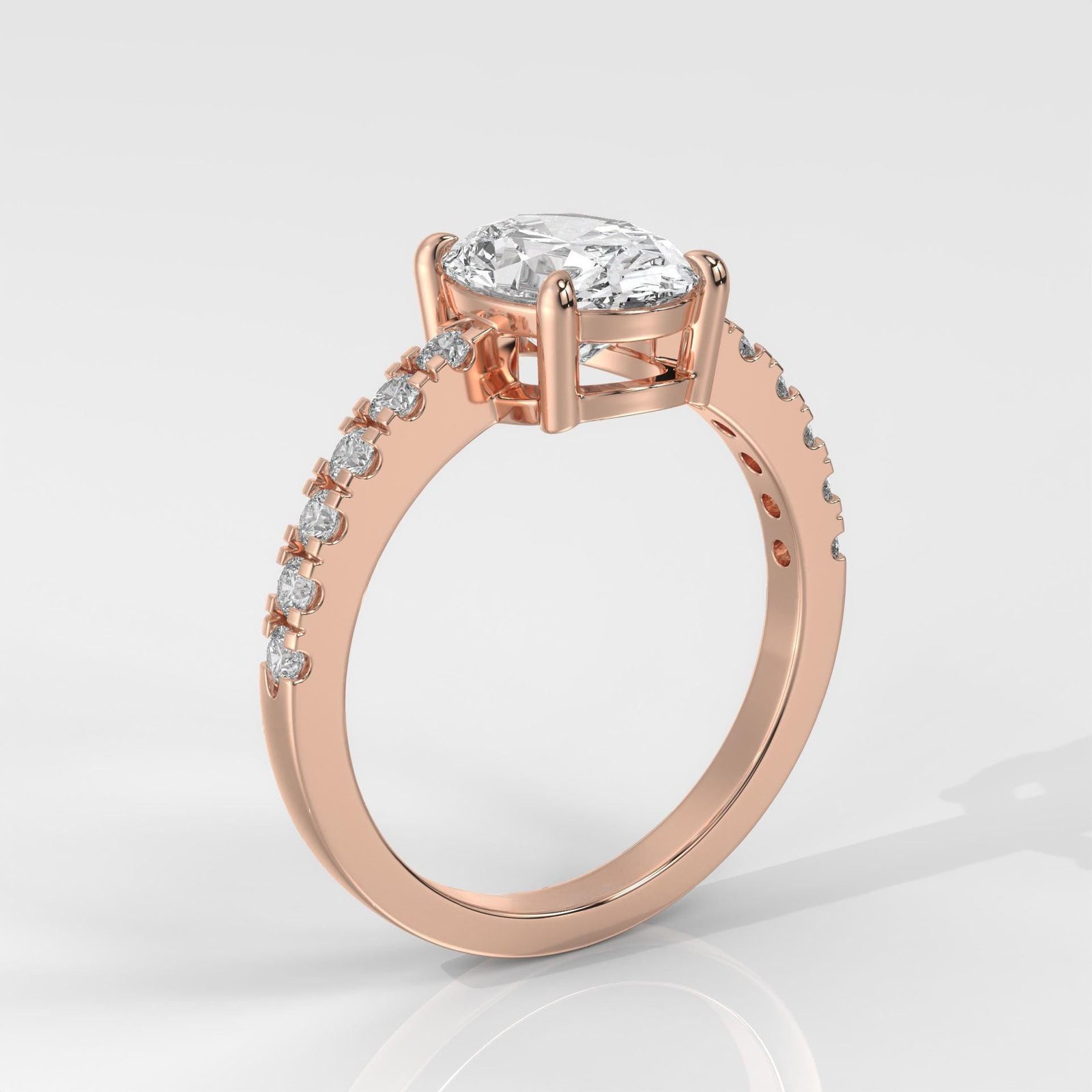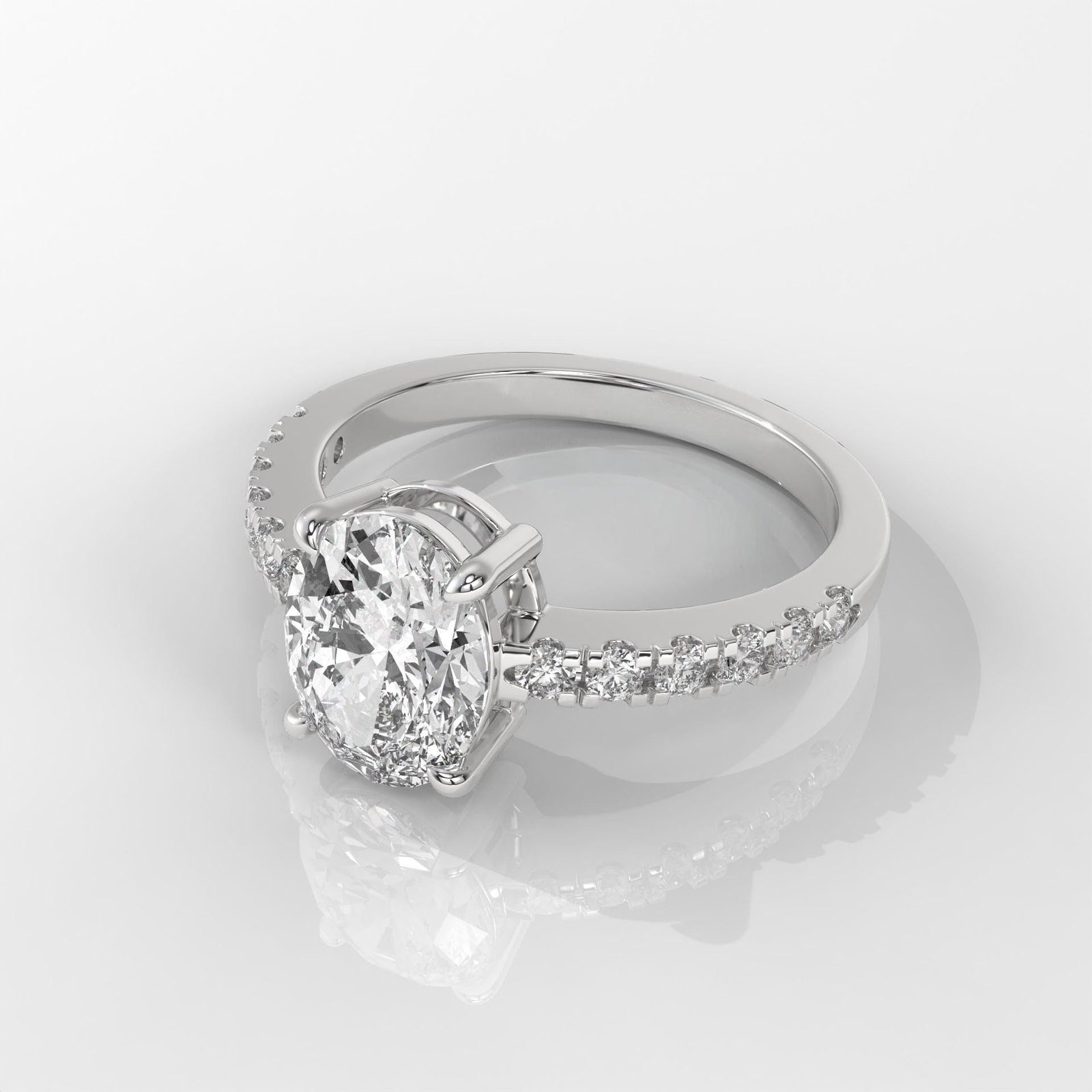 The oval cut diamond is admired for its elongated shape, which flatters the hand and symbolizes individuality and elegance. With its sustainable lab-grown origins, this engagement ring offers both beauty and responsibility, making it the perfect choice for modern love.