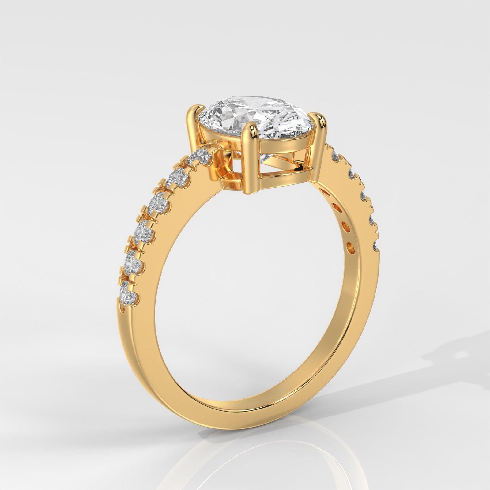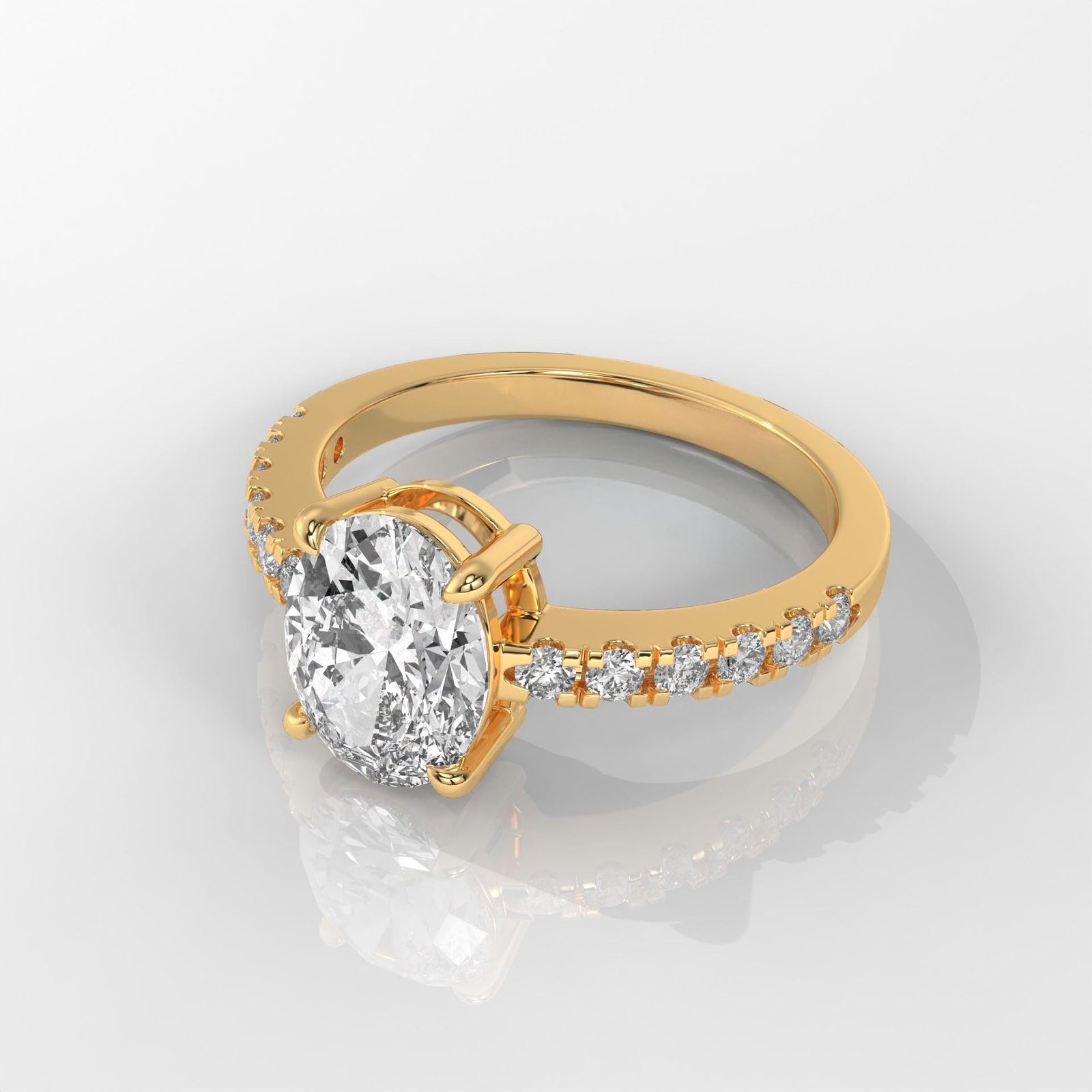 Celebrate your love story with our 14K Gold Oval Cut Diamond Engagement Ring, a symbol of sophistication, grace, and everlasting beauty. At the heart of this ring is a breathtaking IGI-certified lab-grown oval cut diamond, carefully set in a secure four-prong design that enhances its natural brilliance. The band is adorned with a row of sparkling pave-set diamonds, adding extra fire and radiance from every angle.