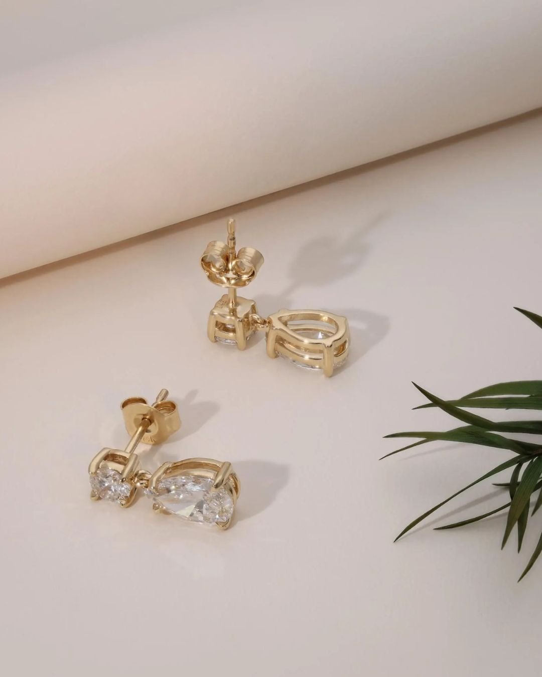Introducing a modern twist on timeless elegance these 14K Yellow Gold Two-Stone Diamond Earrings feature a captivating blend of Oval Brilliant and Round Brilliant IGI Certified Lab Grown Diamonds. The design showcases two perfectly matched 1-carat center stones (Oval + Round), symbolizing unity, duality, or simply elevated luxury.