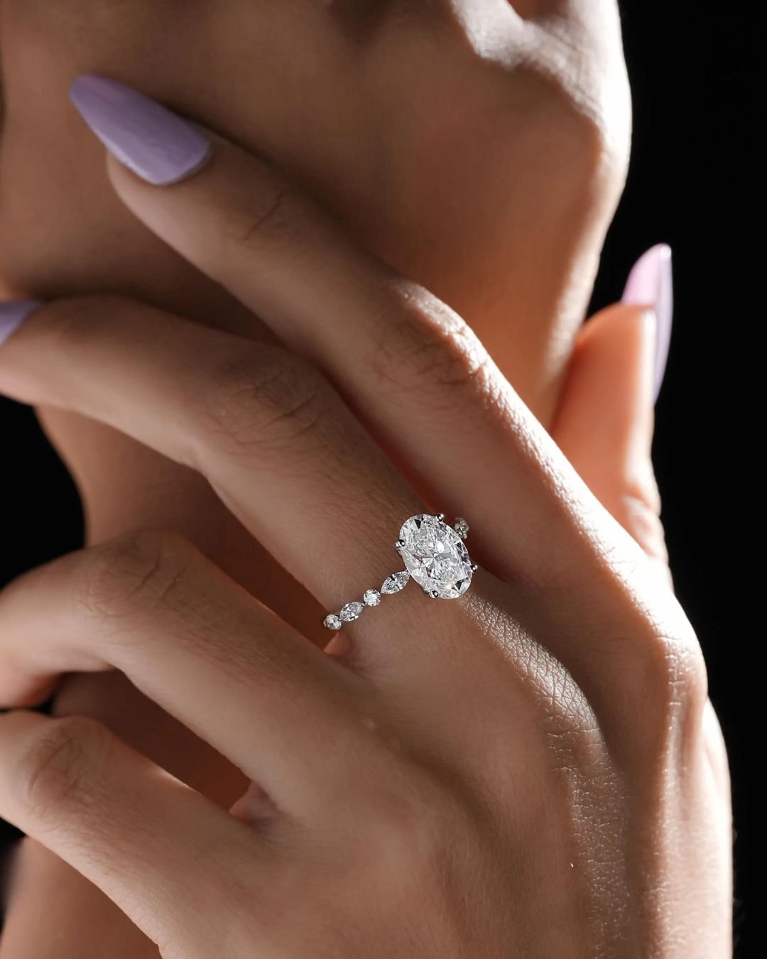 Capture your love story with this elegant 14K Gold Oval Brilliant Diamond Engagement Ring, featuring an IGI Certified lab grown diamond as its centerpiece. The Oval Brilliant cut offers a graceful, elongated shape that enhances finger length and maximizes sparkle making it a favorite among modern brides.