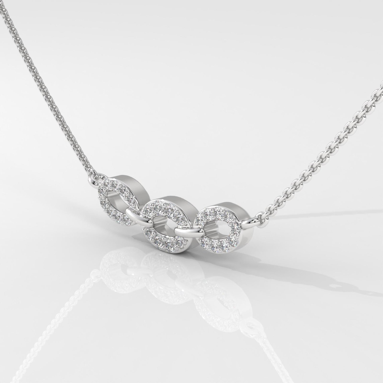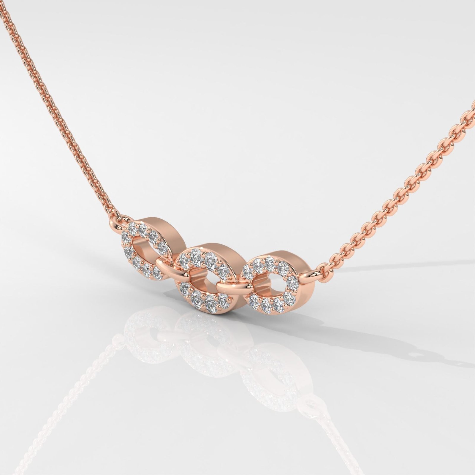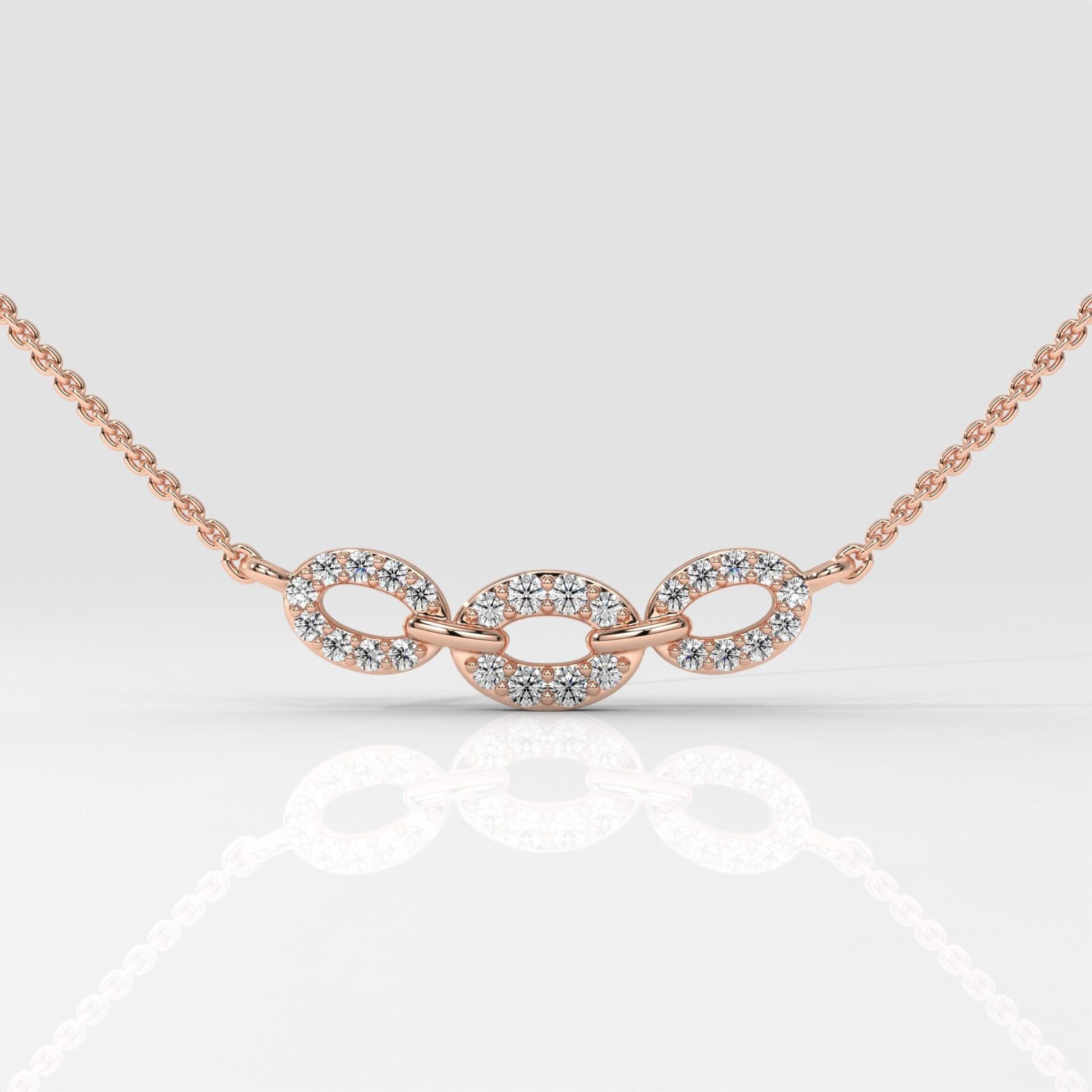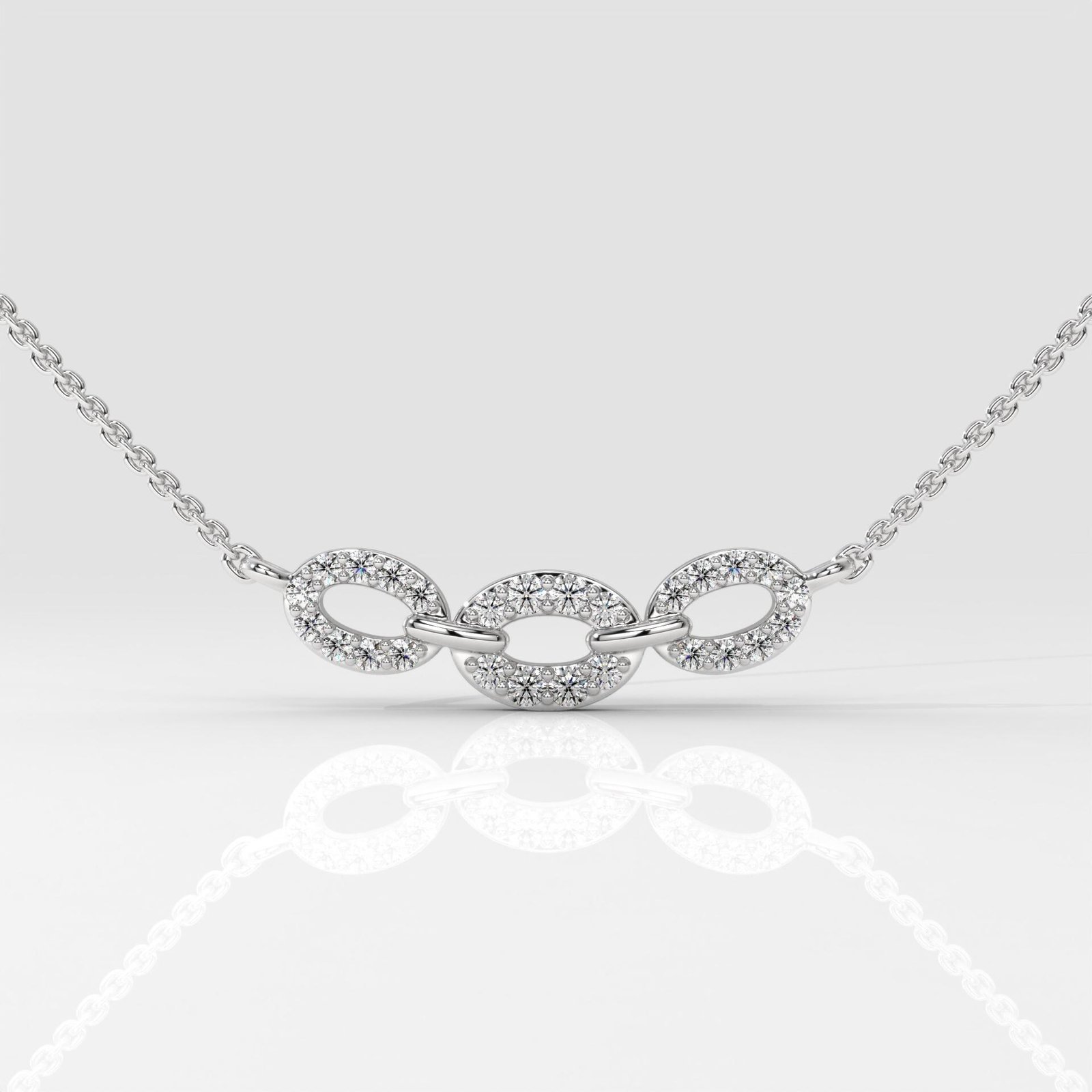 Elegant Oval Triple Link Halo Pendant Necklace with Round Brilliant Lab Grown Diamonds in 14K Gold. DEF/VVS-VS clarity, customizable length & metal options.
