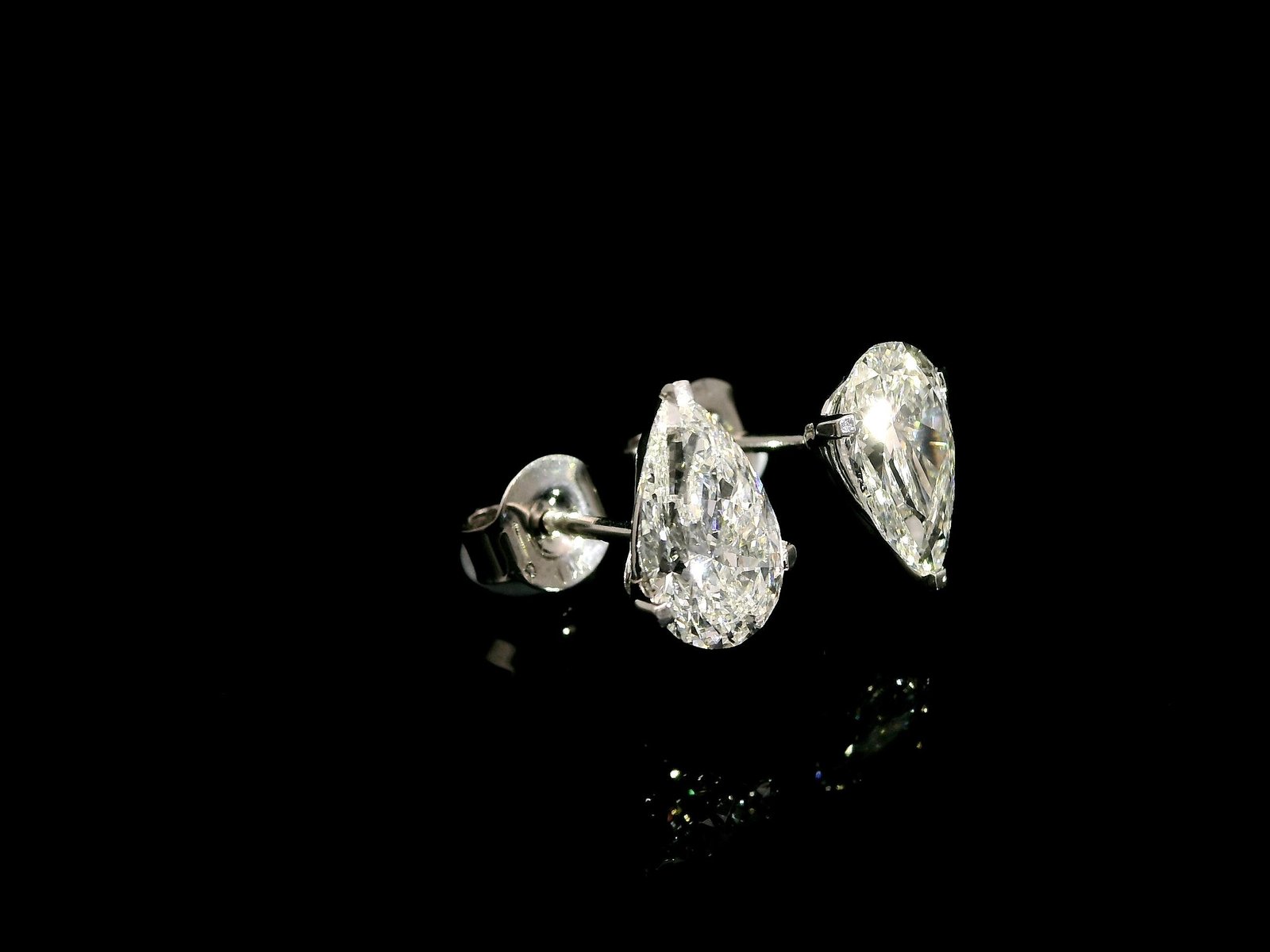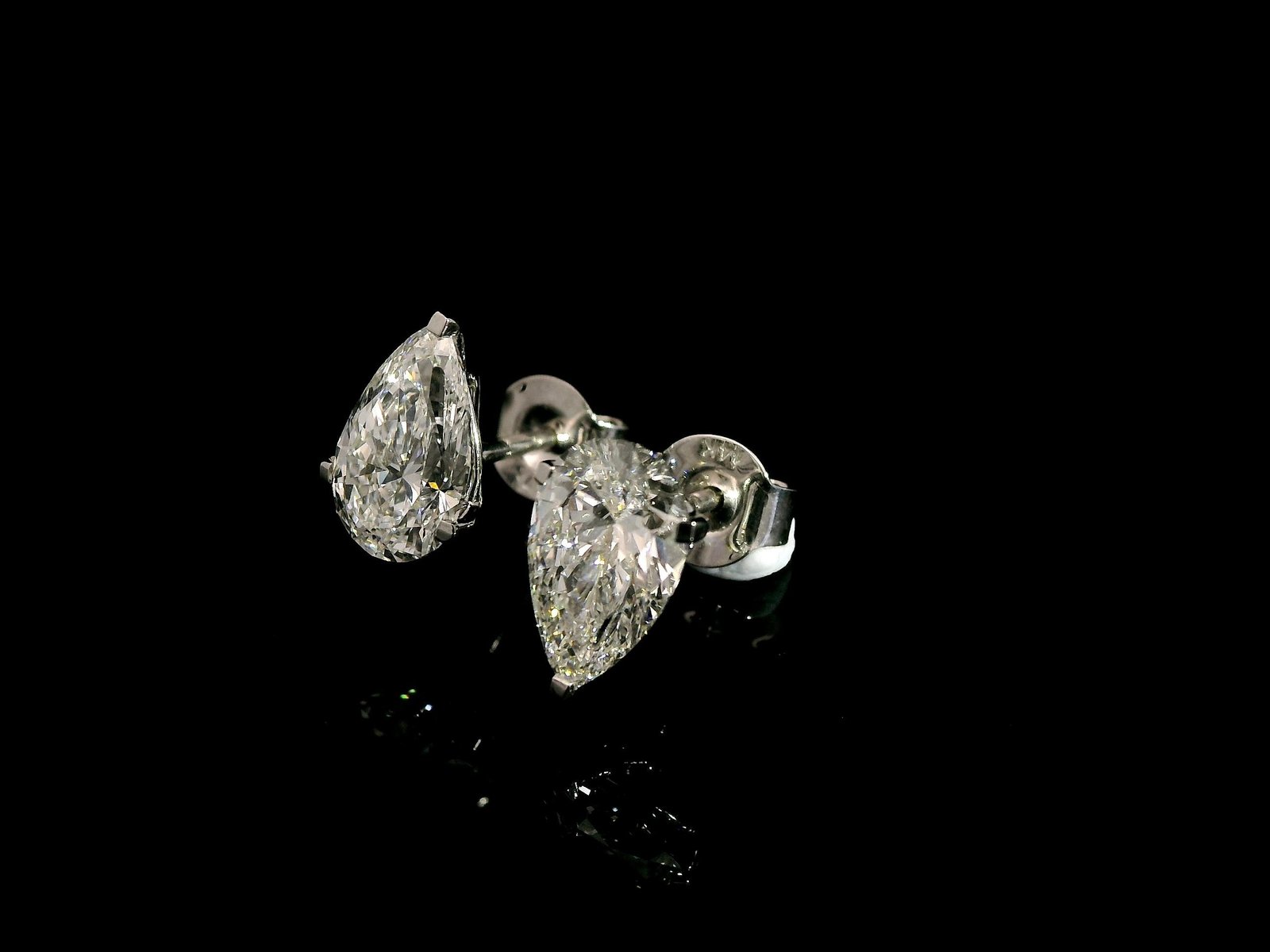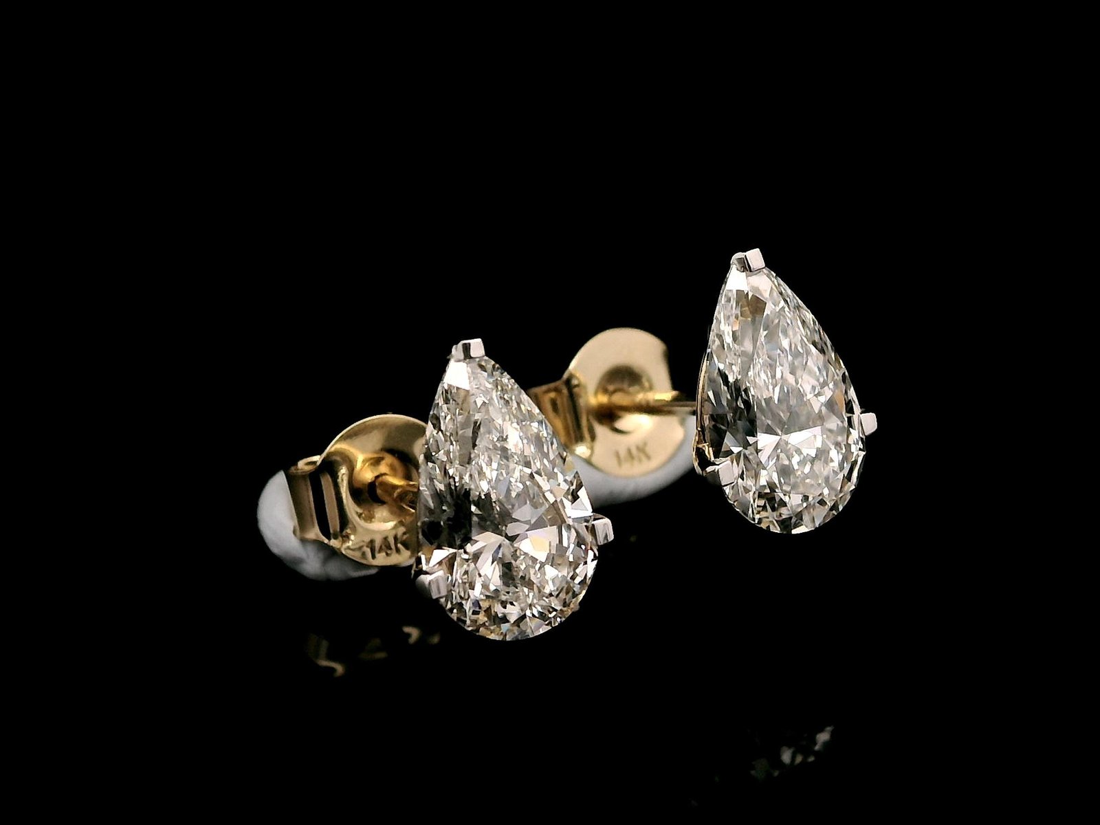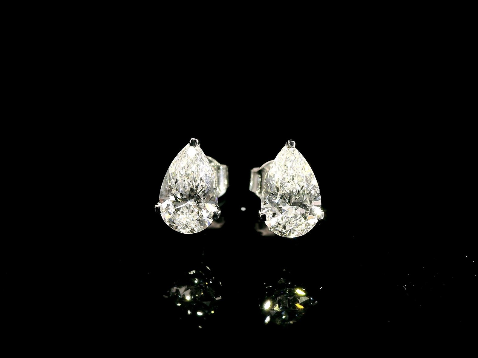 These pear-cut diamond stud earrings are a stunning statement of elegance and refined taste. The unique teardrop shape captures light beautifully, offering exceptional sparkle and timeless appeal. Perfect as a gift or a personal keepsake, these studs are versatile enough to elevate both casual and formal looks.