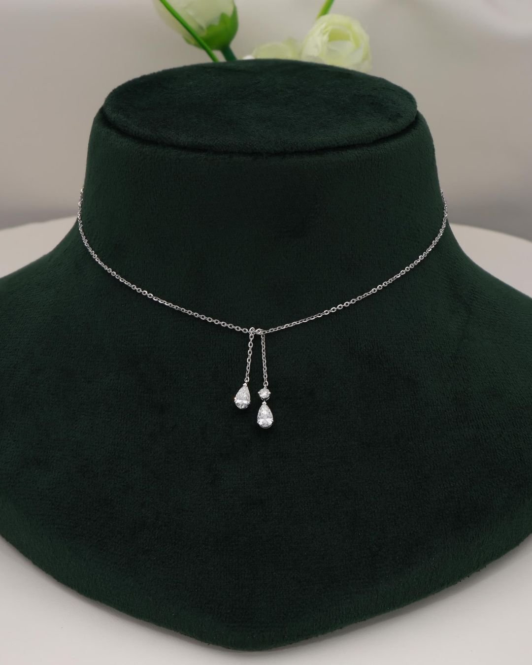 Make a statement with this stunning Pear Cut Lariat Necklace, featuring a unique blend of 2 pear brilliant and 1 round brilliant diamonds, totaling 1.08 carats of exquisite sparkle. Each diamond is carefully selected for its premium DEF color and VVS-VS clarity, ensuring exceptional brilliance and fire.