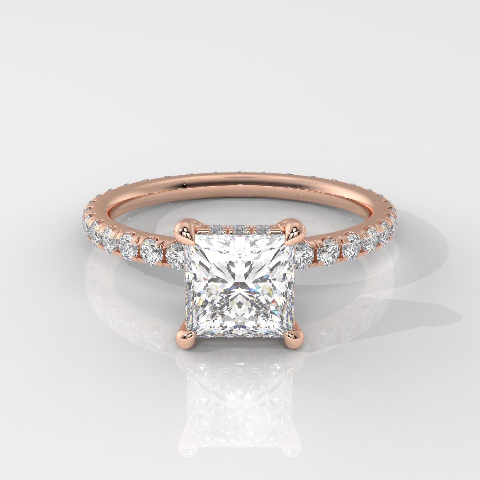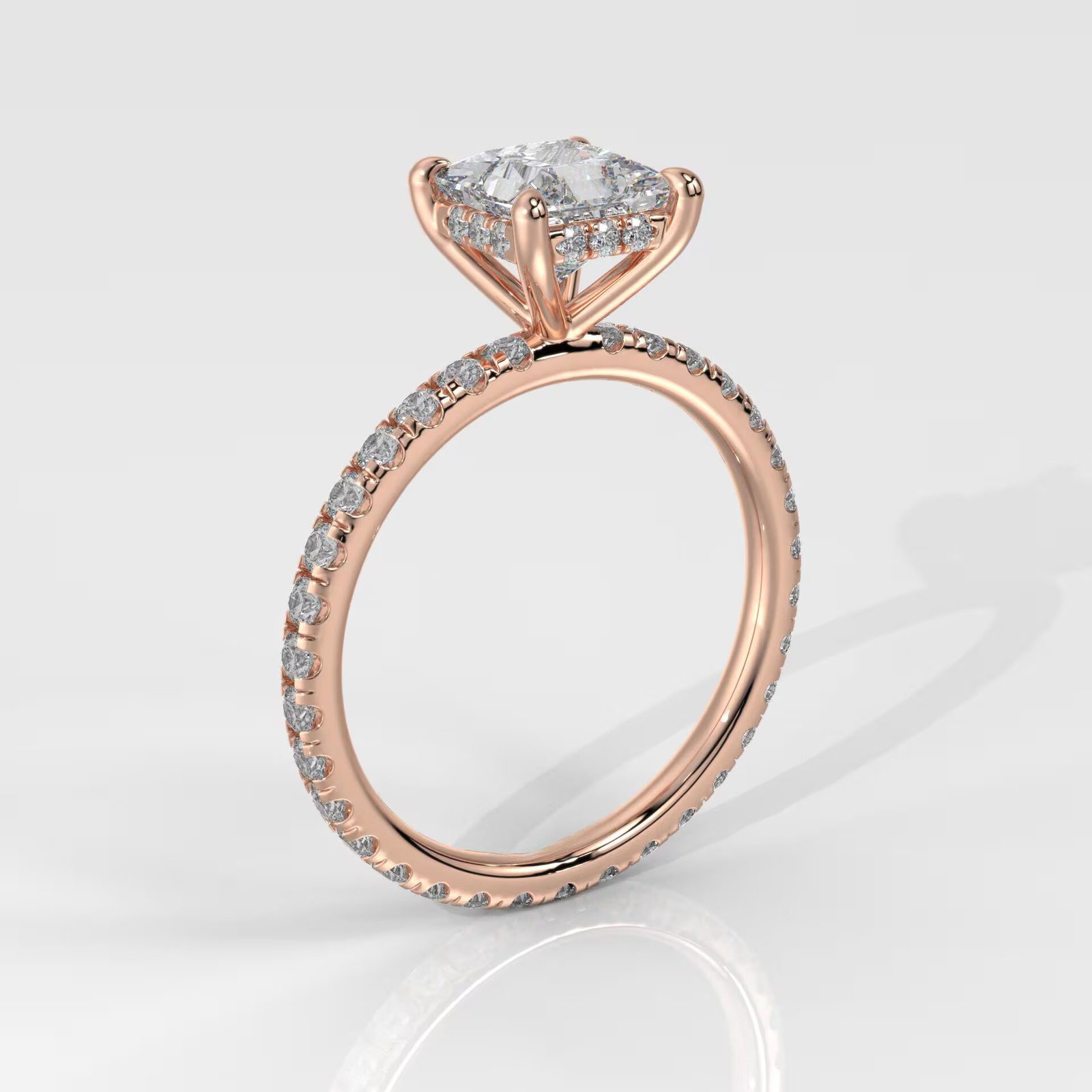 Elegant 14K Gold Princess Cut Lab Grown Diamond Ring with a hidden halo design. IGI Certified, DEF color, VVS–VS clarity. A modern, sparkling engagement ring made to order.