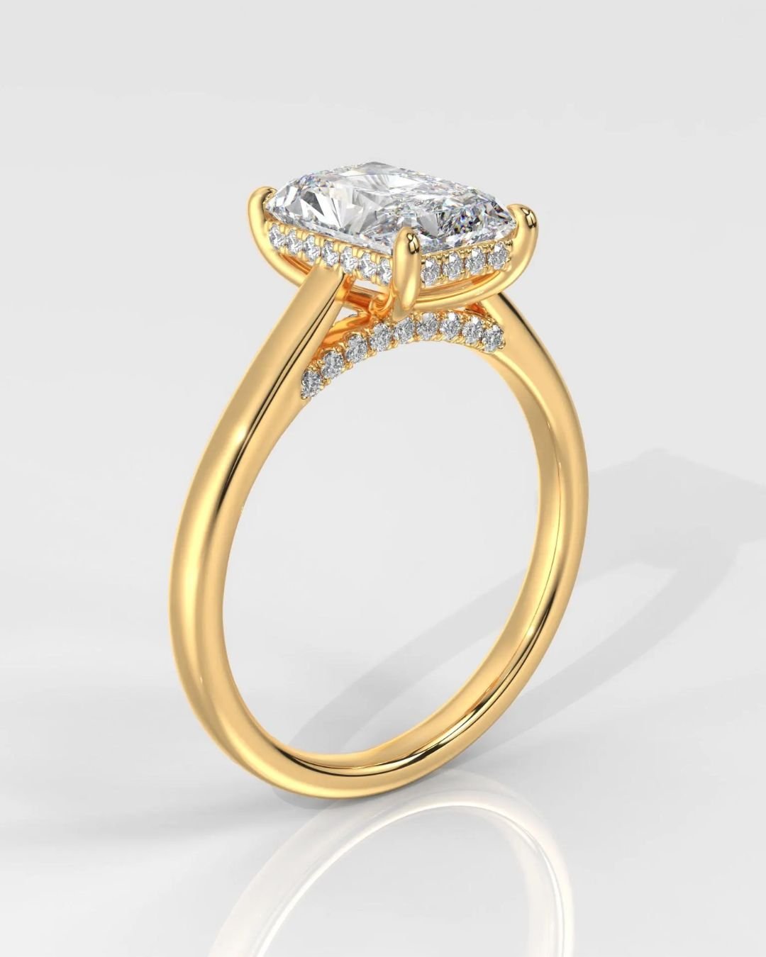 Celebrate your love with the brilliance of our Radiant Diamond Engagement Ring, crafted in solid 14K gold. At its heart is a stunning Radiant Brilliant lab grown diamond, certified by IGI for its exceptional quality, brilliance, and ethical sourcing. This bold yet elegant cut combines the fire of a round with the clean lines of an emerald cut perfect for those who want a modern twist on classic sparkle.