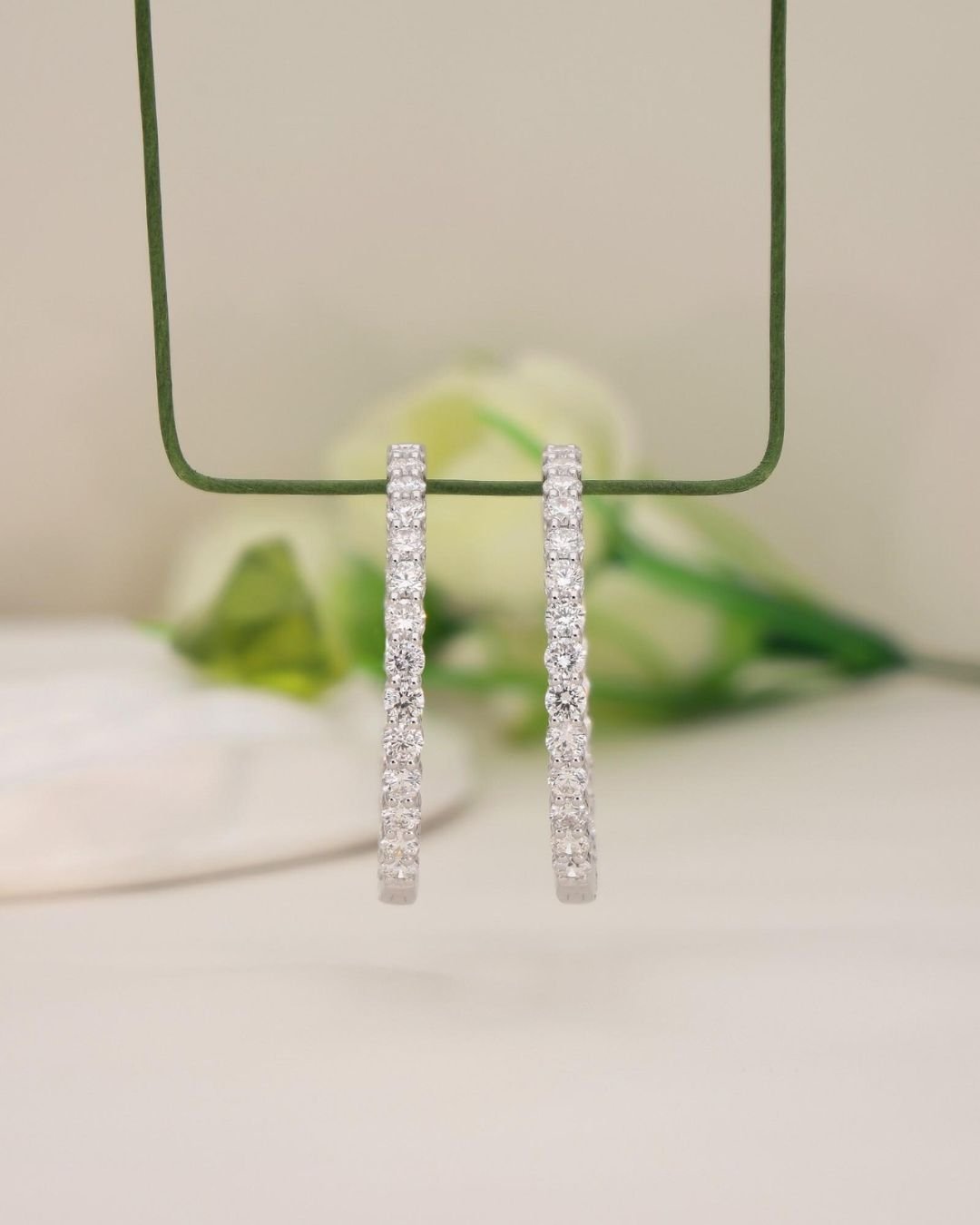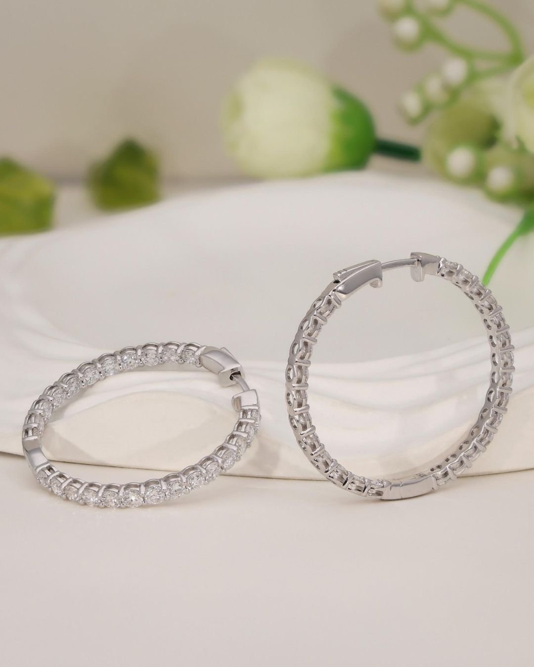 With DEF color and VVS–VS clarity, these ethically sourced diamonds offer the same sparkle and durability as mined diamonds without the environmental or ethical concerns. Whether you’re dressing up for a night out or looking for a go-to pair for daily wear, these hoops are a timeless staple.