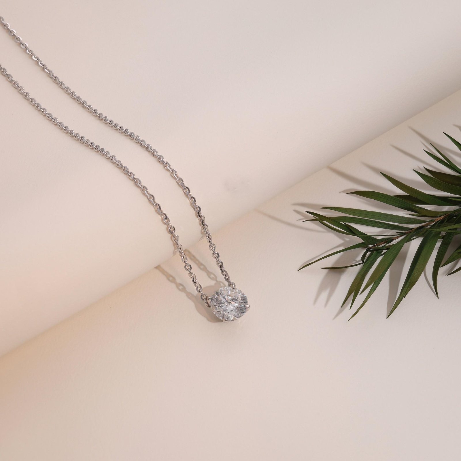 A timeless Round Solitaire Diamond Pendant Necklace by OTP Jewelry, showcasing a brilliant lab-grown round diamond set in a classic four-prong design. Suspended on a delicate chain, this minimalist yet elegant piece is perfect for everyday wear or as a meaningful gift.