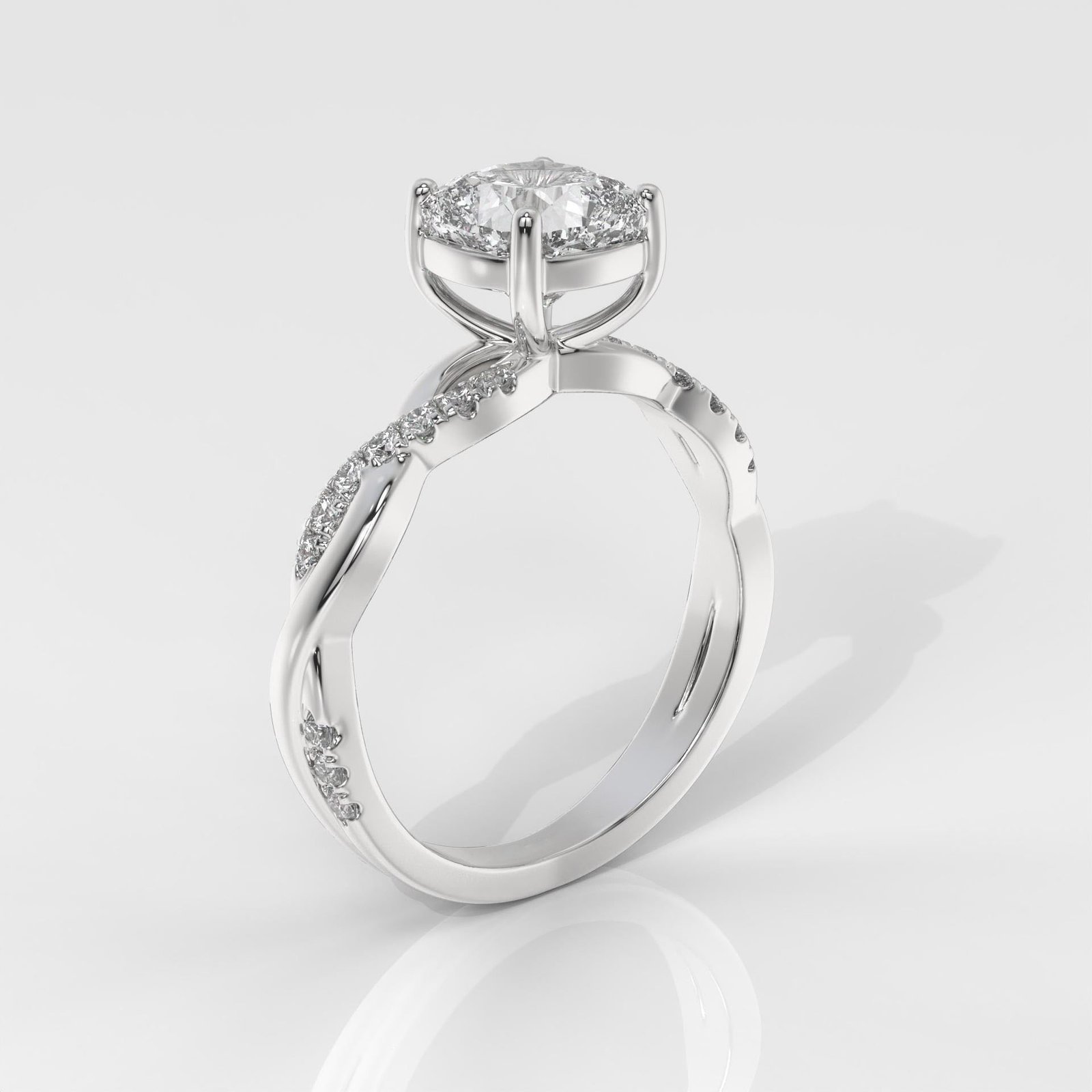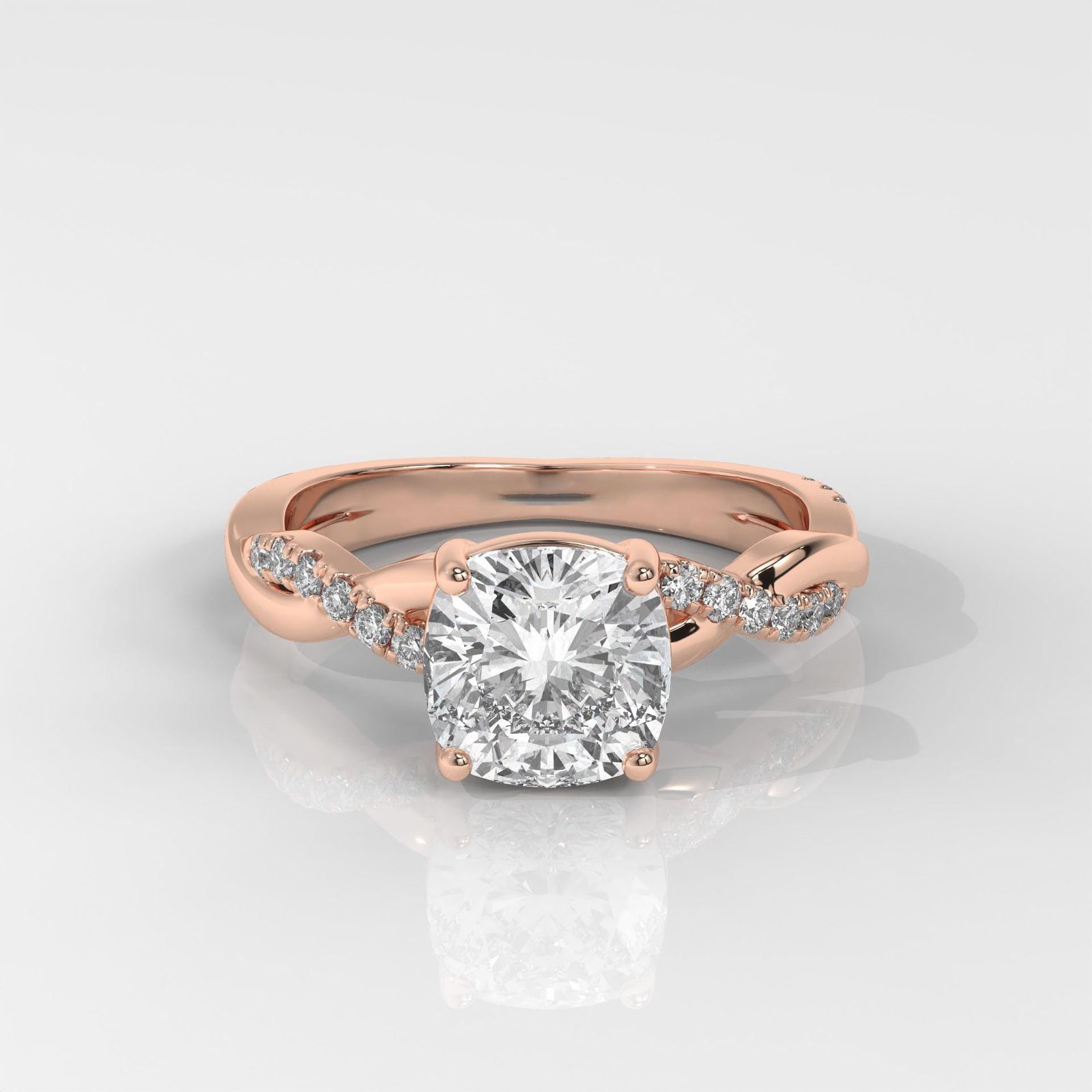 The cushion-cut diamond combines classic elegance with modern brilliance, making it one of the most sought-after styles for engagement rings. The twist band adds symbolic meaning, representing unity and an unbreakable bond. Crafted with lab-grown diamonds, this ring offers eco-friendly luxury with exceptional quality.