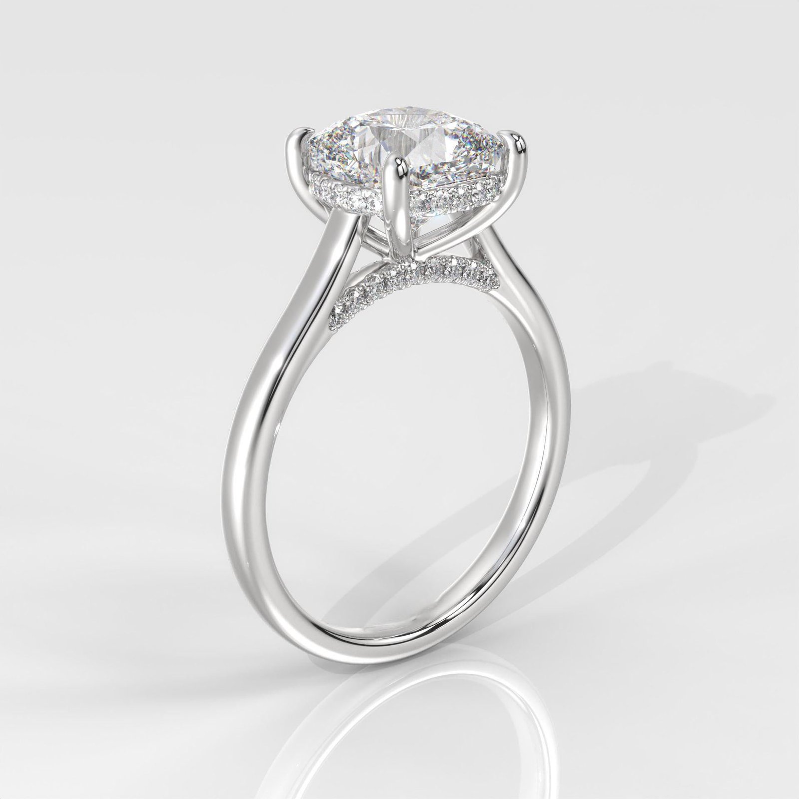 The square brilliant cut represents eternity and everlasting love, while the halo setting enhances its brilliance, making the center diamond appear larger and more radiant. Designed for women who love classic beauty with a touch of modern luxury, this ring is both elegant and versatile ? perfect for engagements, weddings, or as an anniversary gift.