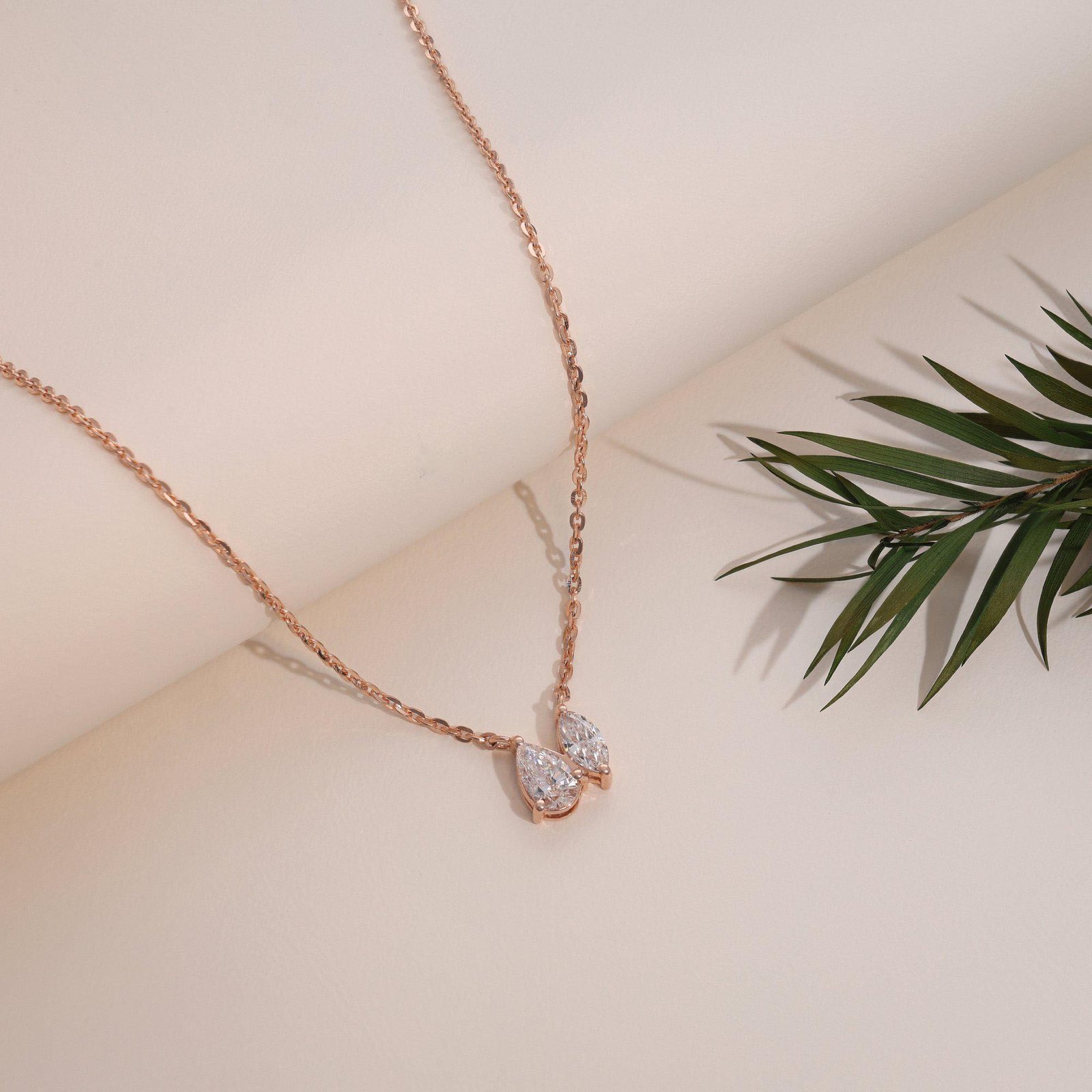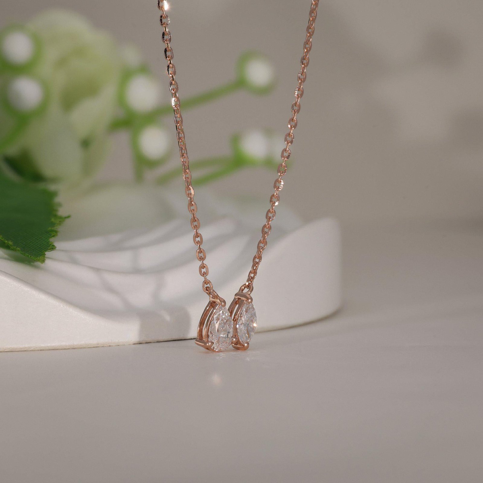 Elegant Marquise & Pear Lab Grown Diamond Necklace in 14K Rose Gold. DEF/VVS?VS certified diamonds, 2.0 CT total, perfect for layering or solo wear. Custom length & diamond size available.