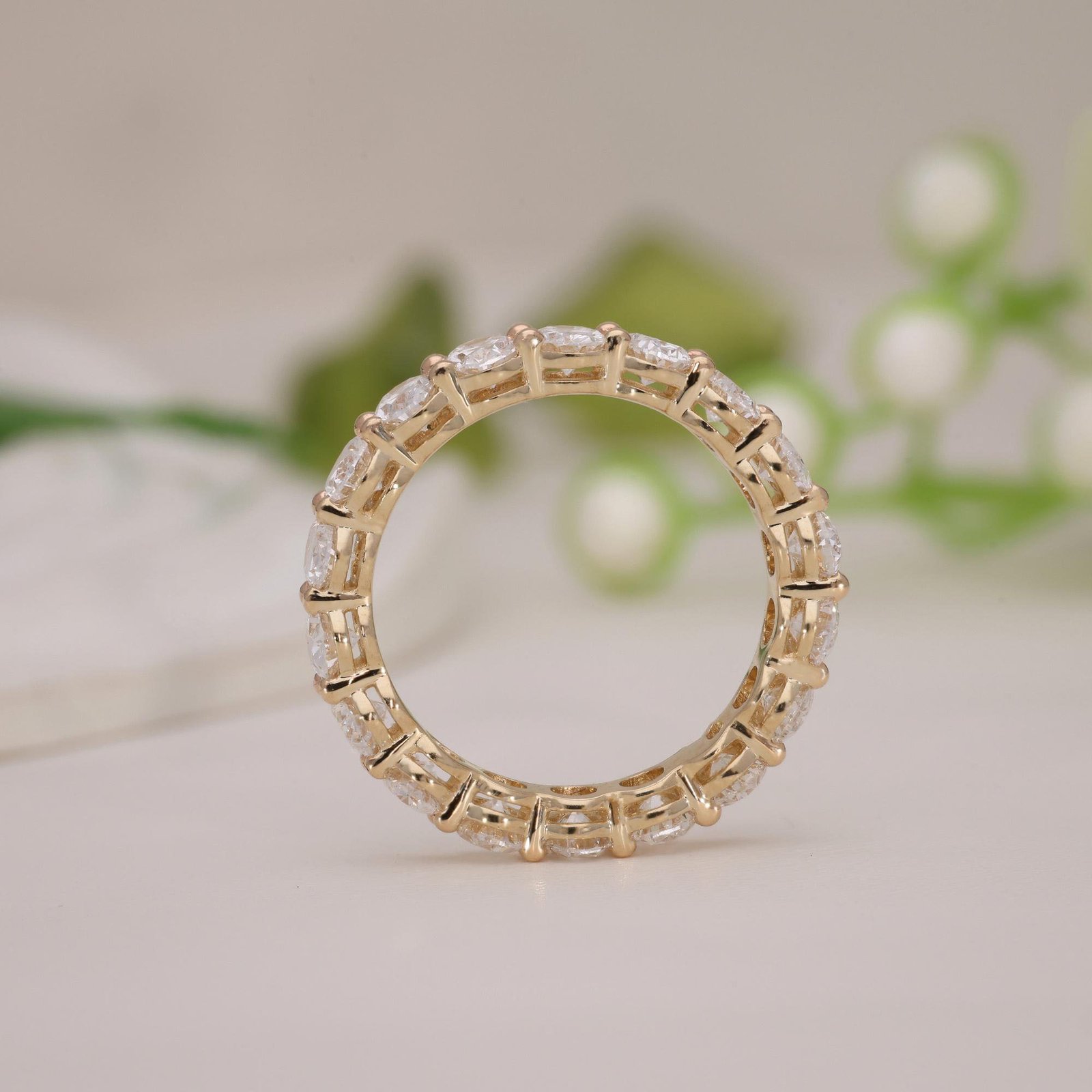 Celebrate everlasting love with the Oval Cut Diamond Eternity Band from OTP Jewelry. Expertly crafted in solid 14K gold, this stunning band features a full circle of lab-grown oval-shaped diamonds, symbolizing eternal commitment. The graceful oval cut diamonds are meticulously prong-set, ensuring maximum brilliance from every angle while maintaining a luxurious yet comfortable fit.