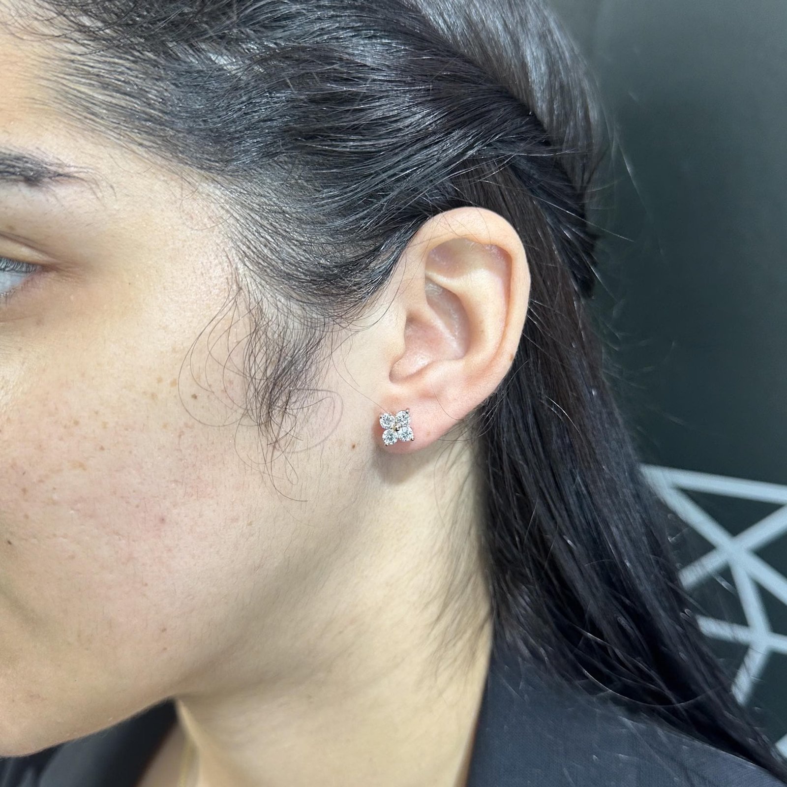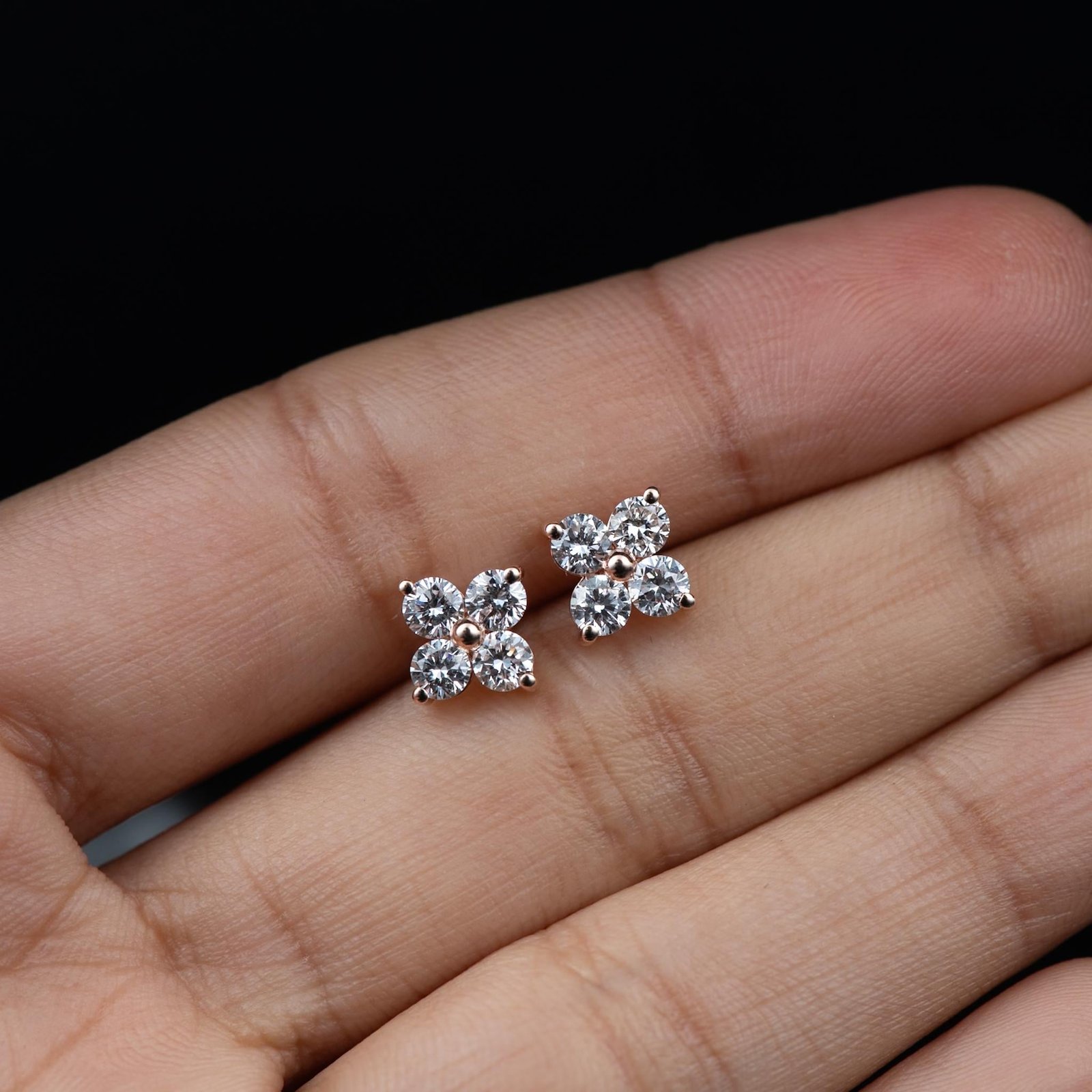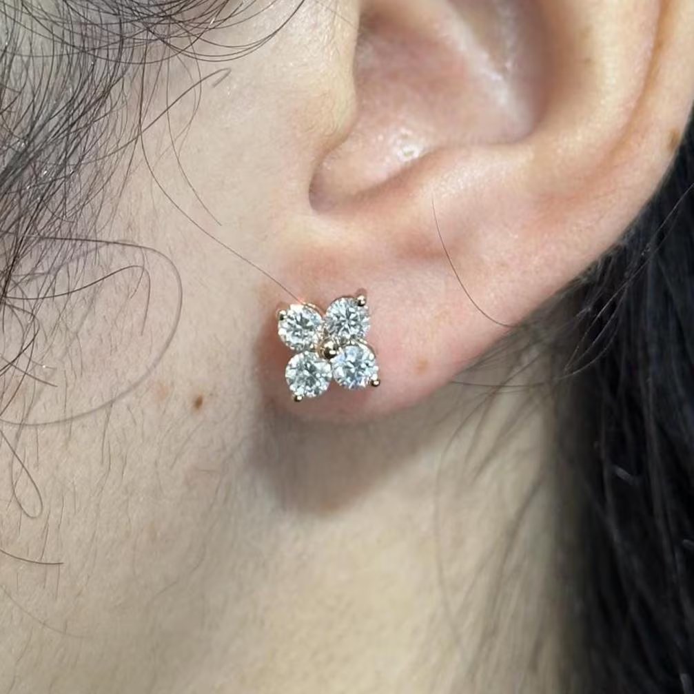 Charming Diamond Flower Stud Earrings by OTP Jewelry, featuring four brilliant lab-grown round diamonds arranged in a delicate floral design. A timeless pair that adds sparkle and elegance to everyday wear or special occasions.